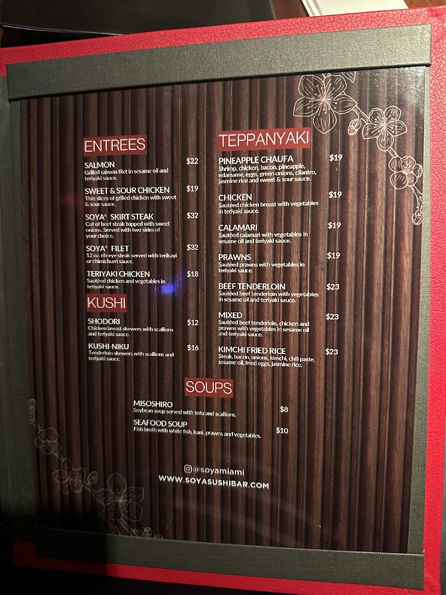 “ We popped into Soya for a quick bite because we were both starving. It so happen to be during they happy hour, so of course we took advantage of their $2 Prosecco. To start I had the seafood soup and we shared Gyosas (fried vegetable dumplings).. they also have it with pork. Now let's get into the main stuff. We had the Bob Marley roll, Explosion roll and the Guava roll. They are all YUMMMYYYY. But we had our personal favorites. I loved the explosion roll and he loved the Guava roll. If we are in the area again we will definitely stop by to explore the rest of the menu. ”